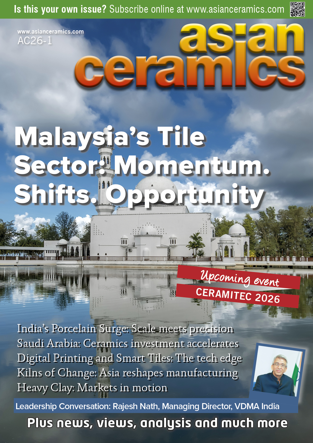 Welcome to 2026 and to the first issue of Asian Ceramics for the new year. A new volume offers an opportunity to reflect on the direction of our industry – and to look ahead with clarity. The global ceramics sector enters 2026 facing a more complex operating environment. Slower construction cycles in some regions, energy and raw material volatility, shifting trade flows and intensifying competition are reshaping market dynamics.